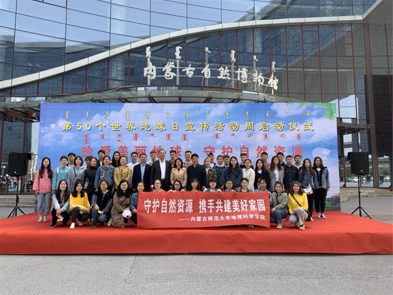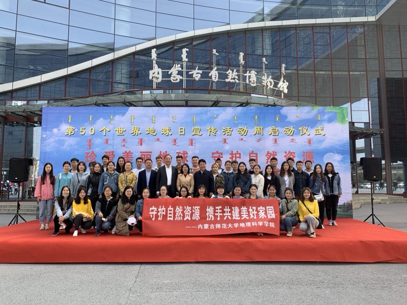 2019年4月21日万象城awc官网登录入口研究生党支部组织发展对象及部分本科生前往内蒙古自然博物馆参加第50个“世界地球日”宣传活动周启动仪式,万象城官网党委书记张裕凤教授参加了此次活动。世界地球日(Earth Day)是一个专为世界环境保护而设立的节日,每年4月22日举办,旨在提高民众对于现有环境问题的意识,动员民众参与到环保运动中,通过绿色低碳生活,改善地球的整体环境。本次世界地球日的主题为“珍爱美丽地球,守护自然资源”。内蒙古自然资源厅王富友副厅长、田力主任、自然博物馆刘志平副馆长与万象城官网师生在内蒙古自然博物馆前合影留念!