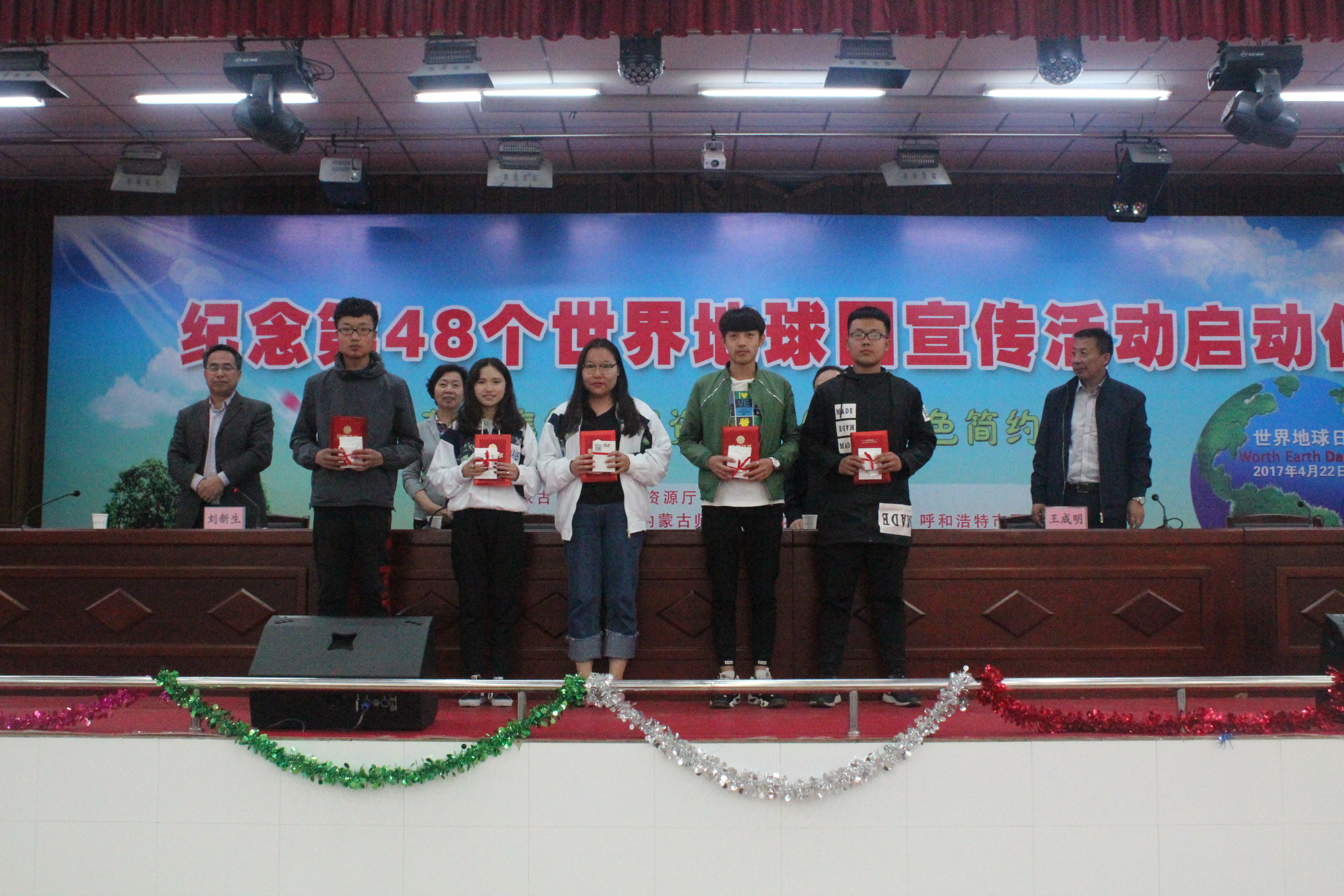 2017年4月22日是第48个世界地球日,今年国家地球日的活动主题是“节约集约利用资源 倡导绿色简约生活――讲好我们的地球故事”,4月21日上午,万象城官网党总支副书记李雨薇老师、学生会主席带领万象城官网22名志愿者参加在内蒙古工程学校举办的“纪念第48个世界地球日宣传活动启动仪式”。