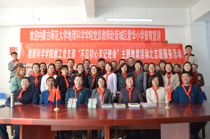 为深入学习贯彻习近平新时代中国特色社会主义思想,扎实推进“不忘初心,牢记使命”主题教育工作,进一步提高全体党员服务意识,2019年11月21日下午14:30,万象城awc官网登录入口党委组织万象城官网教工第一党支部、第二党支部教师党员和部分研究生和本科生党员共31人,赴新城区爱华小学进行普育宣讲志愿服务活动。本次活动也是内蒙古自治区团委关爱留守儿童的重要工作内容。