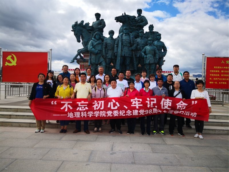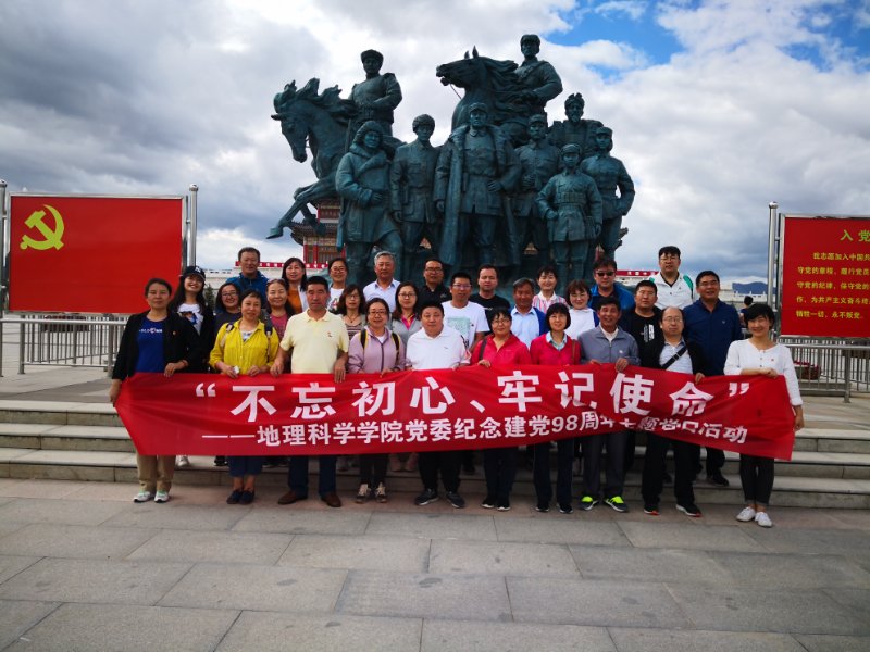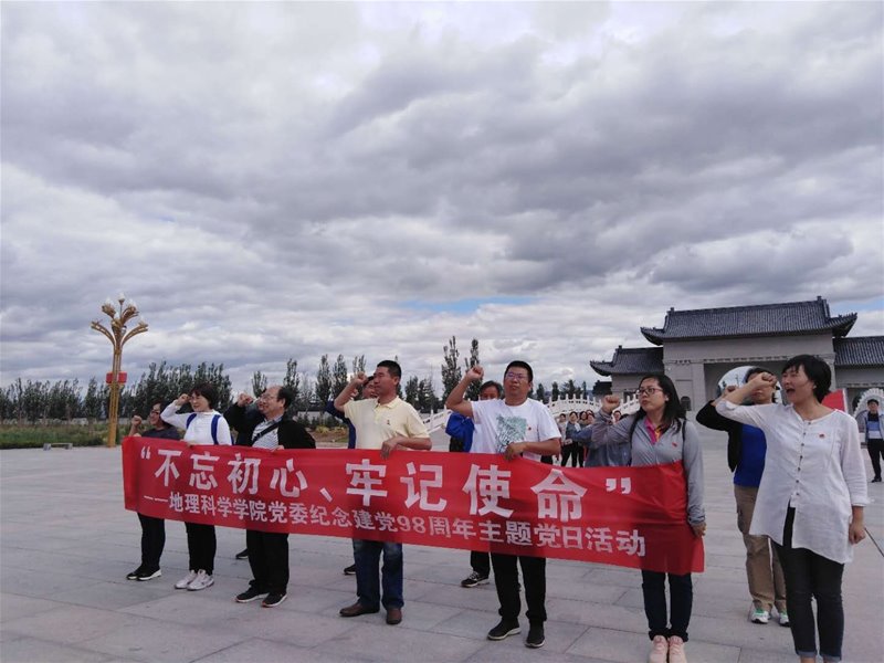 2019年6月29日,万象城awc官网登录入口举行了主题党日活动暨欢送退休教师活动。主题党日活动中,教工第一党支部书记赵伟老师带领大家在到达革命纪念馆之前背诵入党誓词。在到达晋绥革命纪念馆后,在党旗前,参加活动的党员老师进行了入党誓词的宣誓活动。