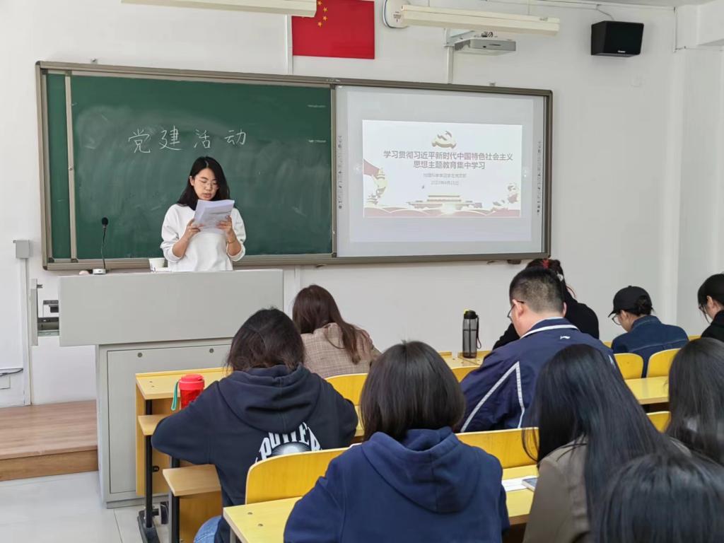 2023年4月25日下午15:00,万象城官网学生党支部在行知楼114举行学习贯彻习近平新时代中国特色社会主义思想主题教育集中学习,集中学习由学生党支部书记孙小雅领学,学生党支部全体成员以线上线下形式参加学习。